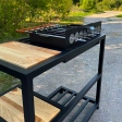 Розміри стаціонарного мангала зі столом та знімною жаровнею:Висота – 92 см.Ширина – 58 см.Довжина – 110 см.Габарити жаровні – 675х350х180 мм.