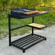 Особливості мангала:Автоматичний електропривод нового покоління. Тихий мотор живиться від звичайного Power Bank (5V), обертає шампури з оптимальною швидкістю для рівномірного просмаження шашлику. Знімна жаровня професійного класу. Вона виготовлена з надійної та довговічної сталі, сумісна з шампурами різної довжини. Знімається для зручного очищення після використання. Матеріал каркаса. Рама мангала виготовлена з товстої сталі. Якісний матеріал забезпечує корпусу міцність та стійкість до механічних пошкоджень. Матеріал столиків. Два бокових столики, розташовані на різних рівнях, виготовлені з натурального дерева. Матеріал пройшов ретельну обробку, він гладкий, приємний на дотик, безпечний для контакту з харчовими продуктами.