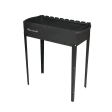 Завдяки знімним ніжкам, покритим чорною порошковою фарбою, мангал стає зручним для транспортування та зберігання, що робить його ідеальним вибором для поїздок на природу або використання на терасі. Опціонально може бути обладнаний однією або двома полицями, які кріпляться до ніжок.