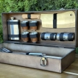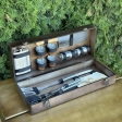 У комплект входить:Кейс з дерева 500х200х120 ммСиліконовий пензликЛопаткаЩипці для мʼяса великіТесакФляга4 чарки 75 мл2 Банки для спеційВіяло деревʼяне