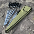 Набір поставляється в стильному чохлі з клапаном на липучці, виготовленому з матеріалу Оксфорд. Унікальна особливість цього чохла - його форма "віяла" в розкладеному стані, що забезпечує зручний доступ до всіх елементів набору. Цей чохол захищає шампури від факторів зовнішнього середовища та пошкоджень при транспортуванні. Чохол також захищає ваш одяг, речі та салон автомобіля від бруду, сажі та жиру, які можуть залишатися на приладді після приготування їжі. Клапан на липучці забезпечує надійне закривання чохла.