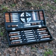 У цьому наборі зібране все необхідне для приготування шашлику на природі. Набір продається у дерев’яному кейсі, в якому його зручно зберігати та транспортувати.