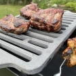 Чавунна решітка-гриль з ручками використовується для грилінгу м'яса, риби, овочів та інших продуктів на мангалах за рахунок свого відмінного рівномірного приготування їжі, відбитка гриля та збереження тепла. Вона має свої особливості та характеристики:- Висока теплопровідність: Чавун є відмінним провідником тепла, тому чавунна решітка-гриль швидко нагрівається і рівномірно розподіляє тепло по всій поверхні.