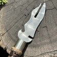 Вилка має два зубці на кінці, які допомагають утримувати м'ясо на шампурі, запобігаючи його ковзанню або падінню під час перевертання або зняття з шампура.